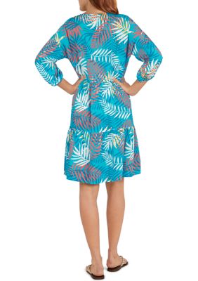 Ruby Rd Women S Hot Tropics Tiered V Neck Palm Print Dress Belk