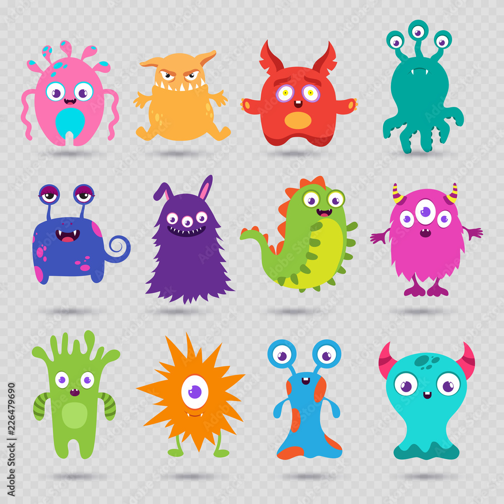 Cute Cartoon Baby Monsters Vector Isolated On Transparent Background Monster Baby Alien Or Beast Collection Face Cyclop Illustration Stock Vektorgrafik Adobe Stock